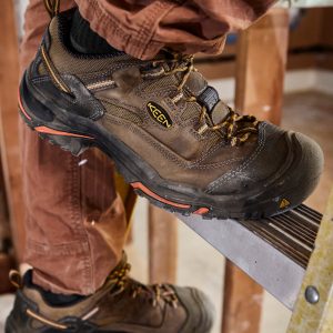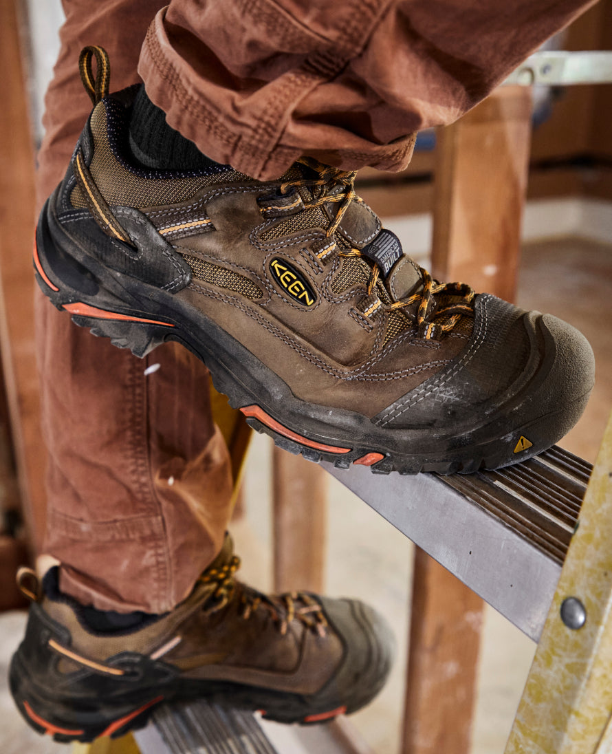 Soft toe work hiker with out-of-the-box comfort for tough jobs. built with a durable leather + mesh upper and shock-absorbing cushioning.