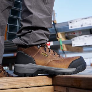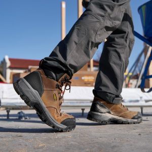 Protects like a work boot. feels like a sneaker. This men’s waterproof 6 style features a leather upper. energy-returning cushioning. and internal met protection.