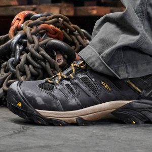 Dependable hiker fit with jobsite-focused features. Durable waterproof work boot with mid-height leather + mesh upper provides essential protection and support.